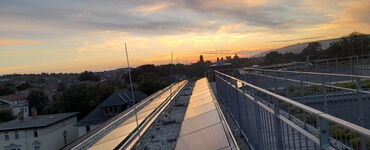 Wie begeistert man junge Menschen für erneuerbare Energien? Eine Klasse des Berufsbildungszentrums Weimar (BBZ) besuchte gemeinsam mit italienischen Austauschschülern und Schülerinnen die begehbare Photovoltaik-Anlage der Energiegenossenschaft Ilmtal eG auf der Dachterrasse der Notenbank in Weimar.