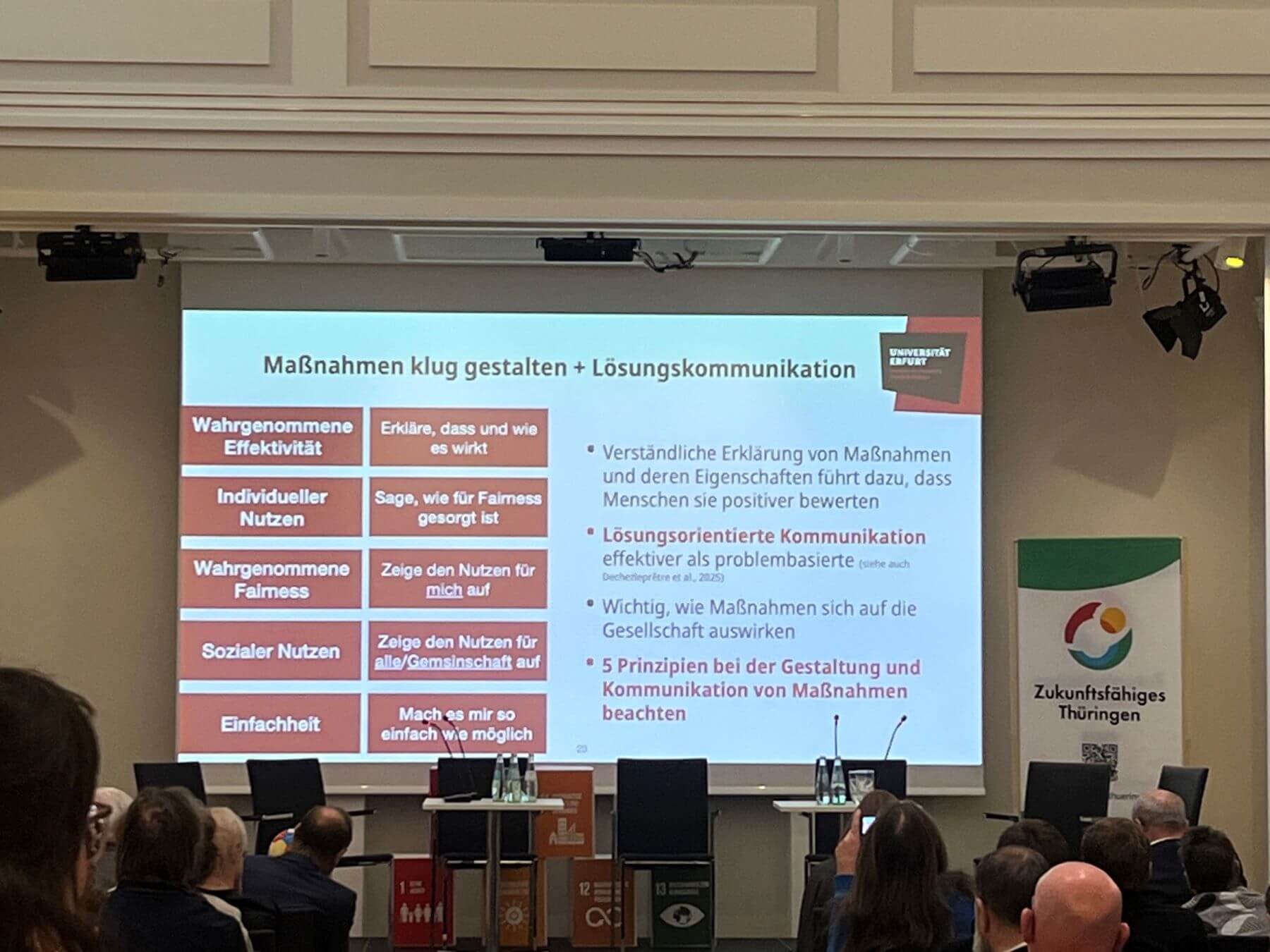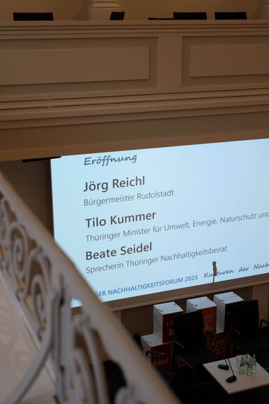 Das Thüringer Umweltministerium und der Thüringer Nachhaltigkeitsbeirat luden am 20. November zum Nachhaltigkeitsforum zum Thema "Kulturen der Nachhaltigkeit" nach Rudolstadt ein. Wo und wie gelingt nachhaltiges Handeln? Wie lässt sich Nachhaltigkeit in Alltagspraktiken, Werten und Überzeugungen verankern?