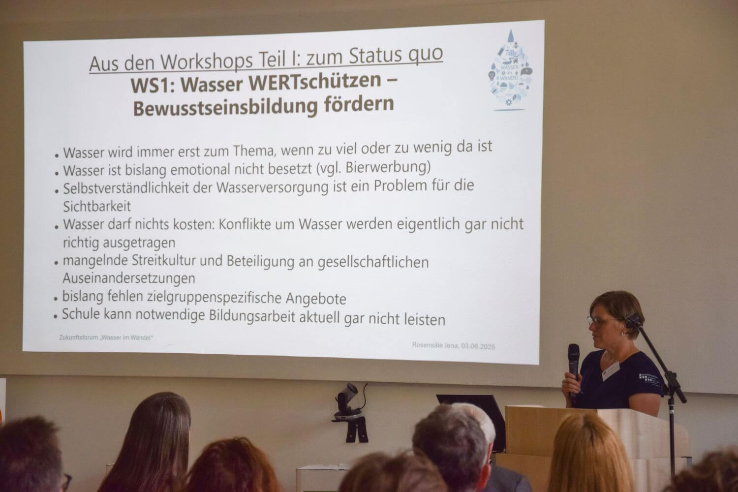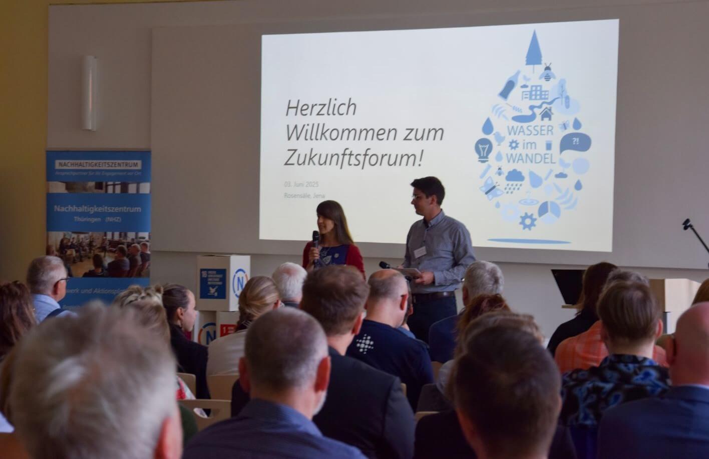 Gemeinsam mit der Thüringer Fernwasserversorgung (TFW) und weiteren Partnern luden wir am 3. Juni nach Jena ein zum 1. Zukunftsforum 2025 unter dem Motto "Wasser im Wandel", das sich mit der Sensibilisierung für, dem nachhaltigen Umgang mit und dem Schutz von Wasser beschäftigte.