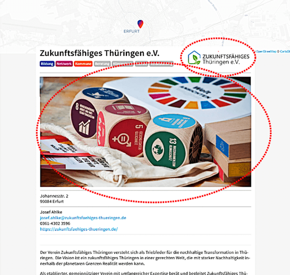 Die Karte "Thüringen nachhaltig" zeigt auf einer eigenen Internetseite Thüringer Akteure und Angebote der nachhaltigen Entwicklung. Hier finden Sie einfach und schnell Initiativen, Organisationen, Projekte und Unternehmen. Und hier geht es zur Karte.