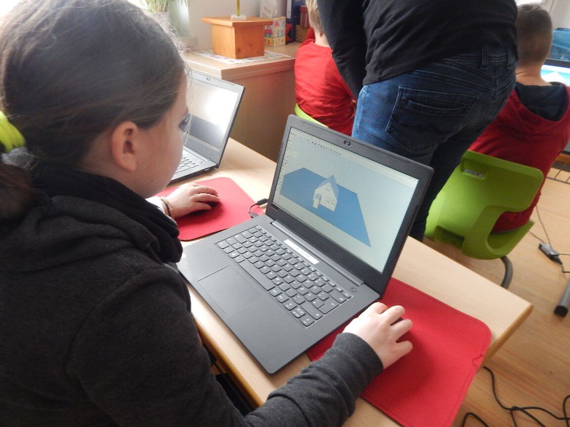 Die Schüler schauen konzentriert auf die Bildschirme der PCs. Doch es ist kein Computerspiel, welches sie so fesselt. Sie konstruieren einen dreidimensionalen Würfel, immer in zweier Teams. Eine kooperative Aufgabe, die offensichtlich ihre ganze Aufmerksamkeit fordert und gleichzeitig so interessant zu sein scheint, dass die meisten von ihnen weder Auge noch Ohr für die unbekannten Gäste haben.