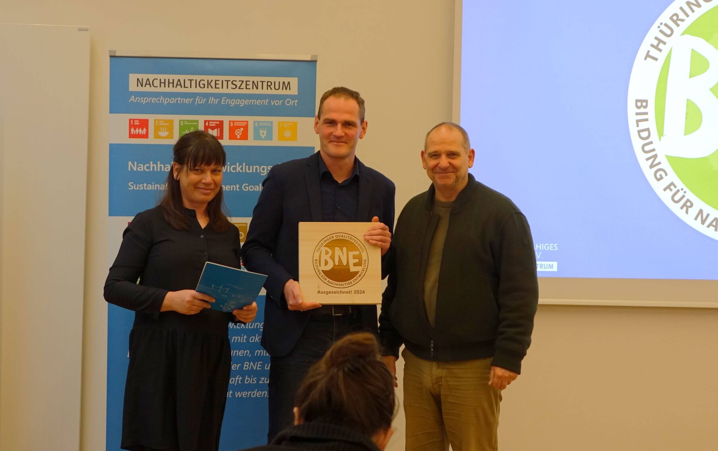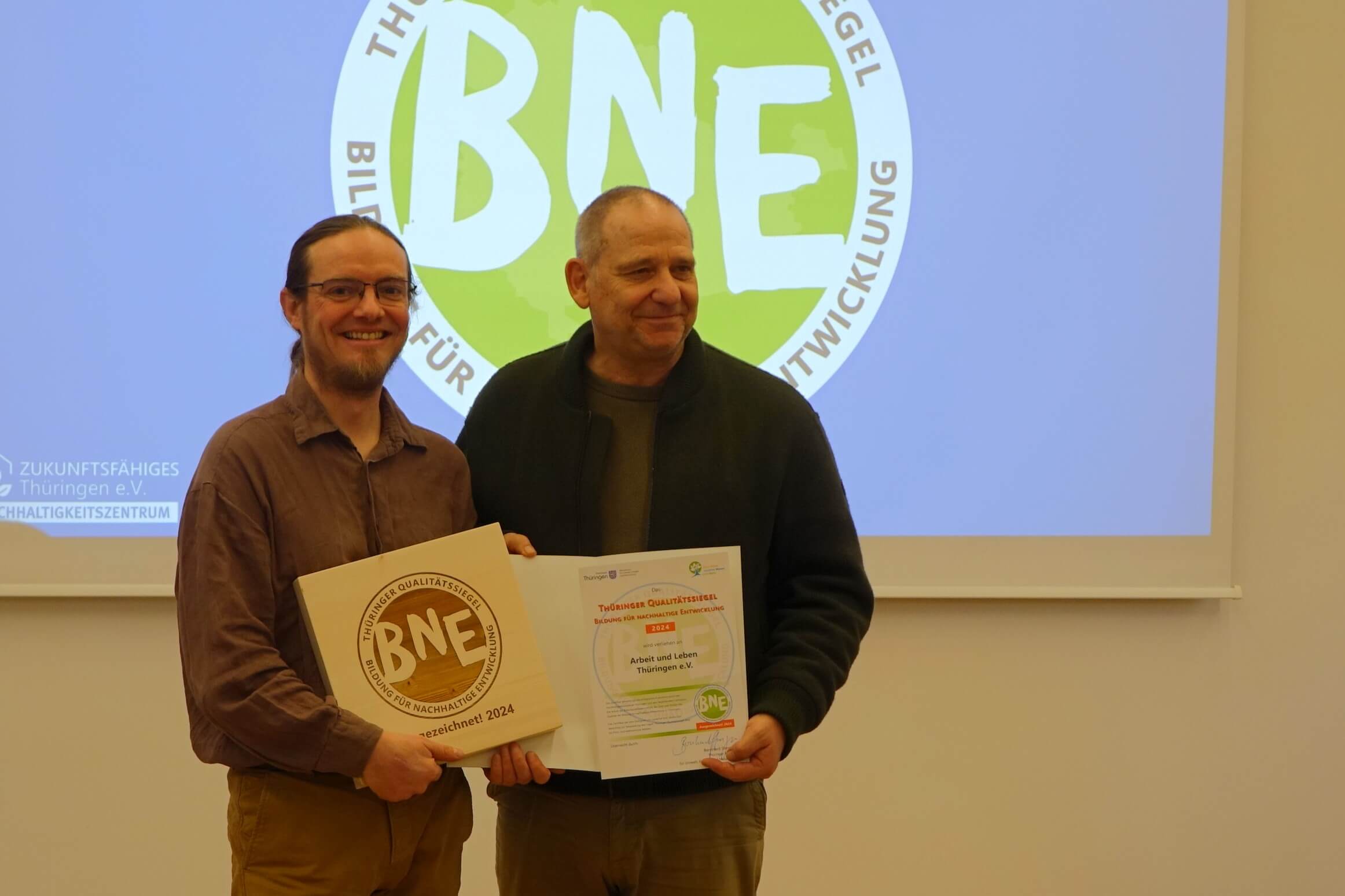 Gleichzeitig freuen wir uns Arbeit und Leben Thüringen e.V. das „Thüringer Qualitätssiegel Bildung für nachhaltige Entwicklung“ überreichen zu können.